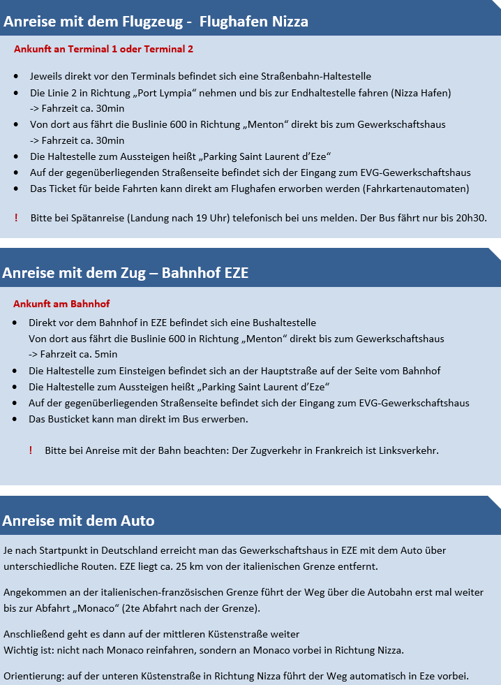 Unser Gewerkschaftshaus liegt in Südfrankreich direkt an der Küste der Côte d’Azur zwischen Monaco (4km entfernt) und Nizza (13km entfernt).