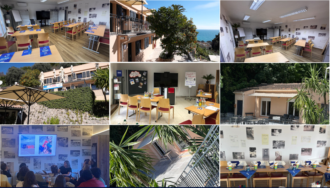 Umrahmt von Palmen, Pinien und weiterem botanischen Reichtum Südfrankreichs bieten alle Seminarterrassen und Räumlichkeiten einen traumhaften Blick auf das Mittelmeer. Auf mehreren Ebenen bieten sich verschiedene Gruppenarbeitsflächen unter freien Himmel.